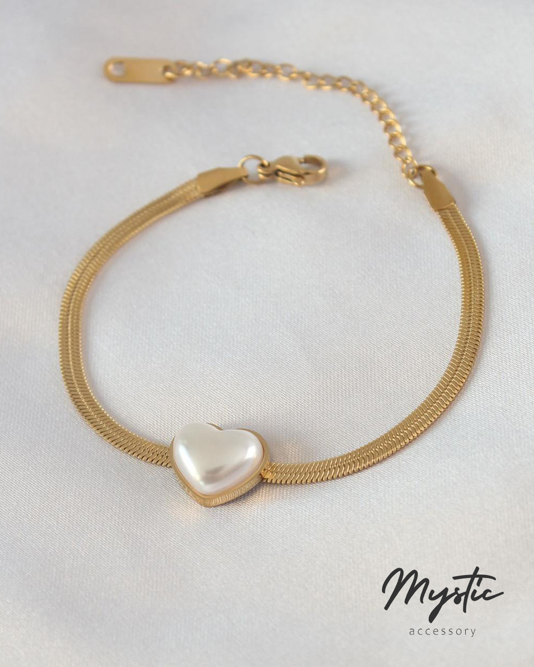 Çelik Gold Renk İtalyan Zincir Model İncili Kalp Model Kadın Bileklik
