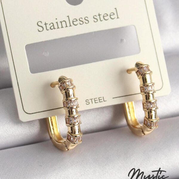 Çelik Gold Renk Zirkon Taşlı Halka Model Kadın Küpe