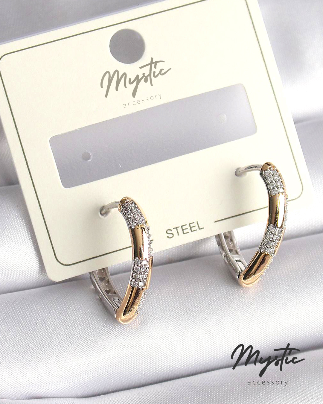Çelik Gümüş Renk Halka Zirkon Gold Zirkon Taşlı Kadın Küpe