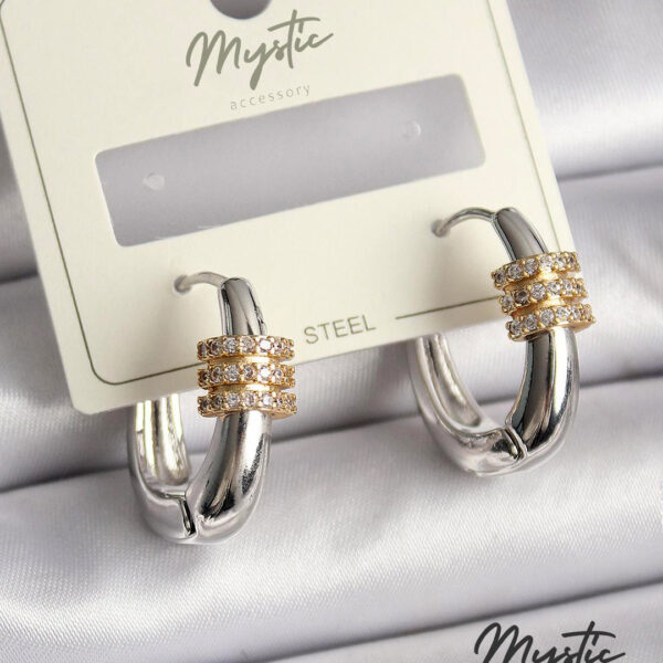 Çelik Gümüş Renk Halka Zirkon Gold Zirkon Taşlı Kadın Küpe