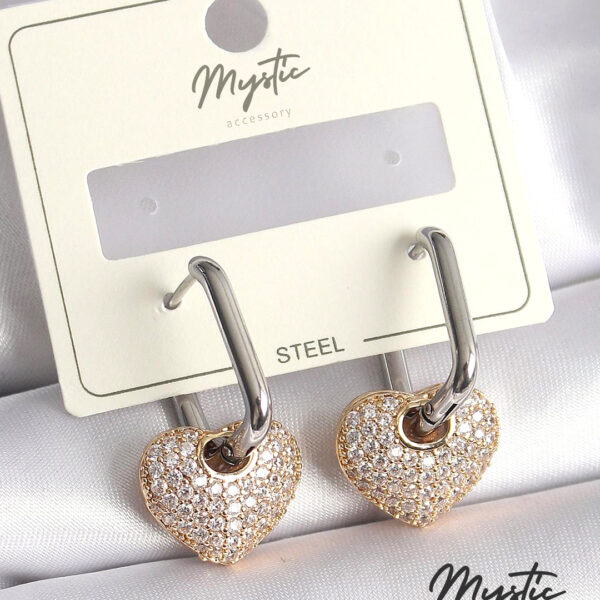 Mix Renk Gold Renk Altın Zirkon Taşlı Kalp Model Kadın Küpe