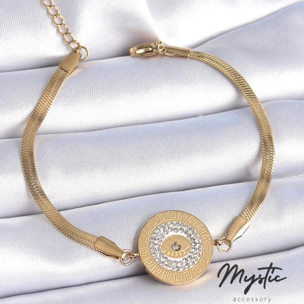 Gold Renk İtalyan Zincir Zirkon Taşlı Göz İşlemeli Madalyon Model Kadın Bileklik
