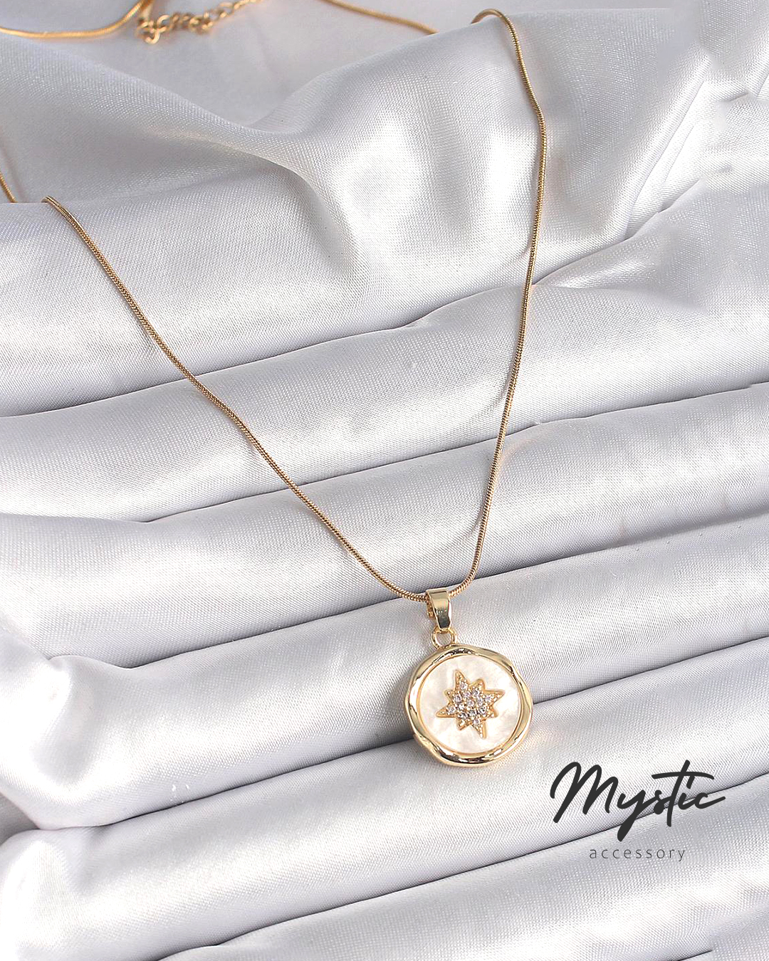 Gold Renk Zincir Beyaz Sedefli Zirkon Taşlı Yıldız İşleme Model Kadın Kolye