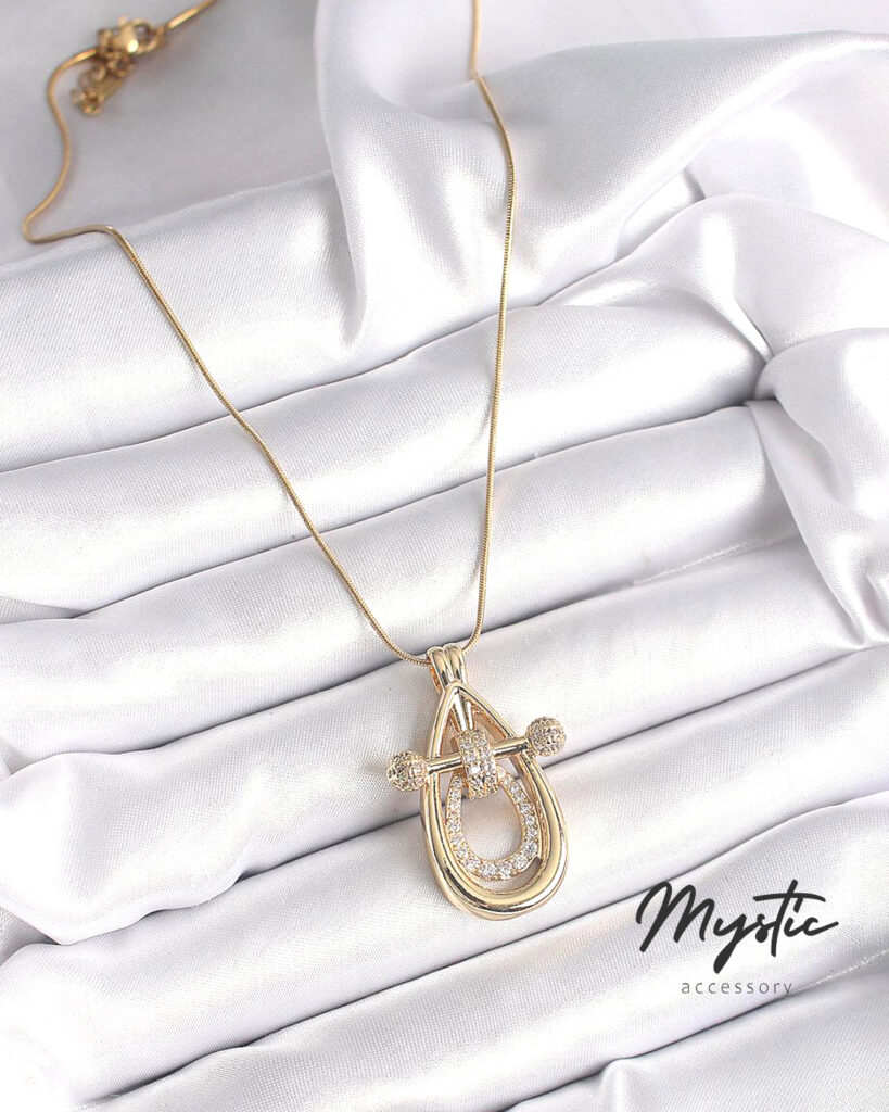 Gold Renk Zincir Zirkon Taşlı Damla Model Kadın Kolye