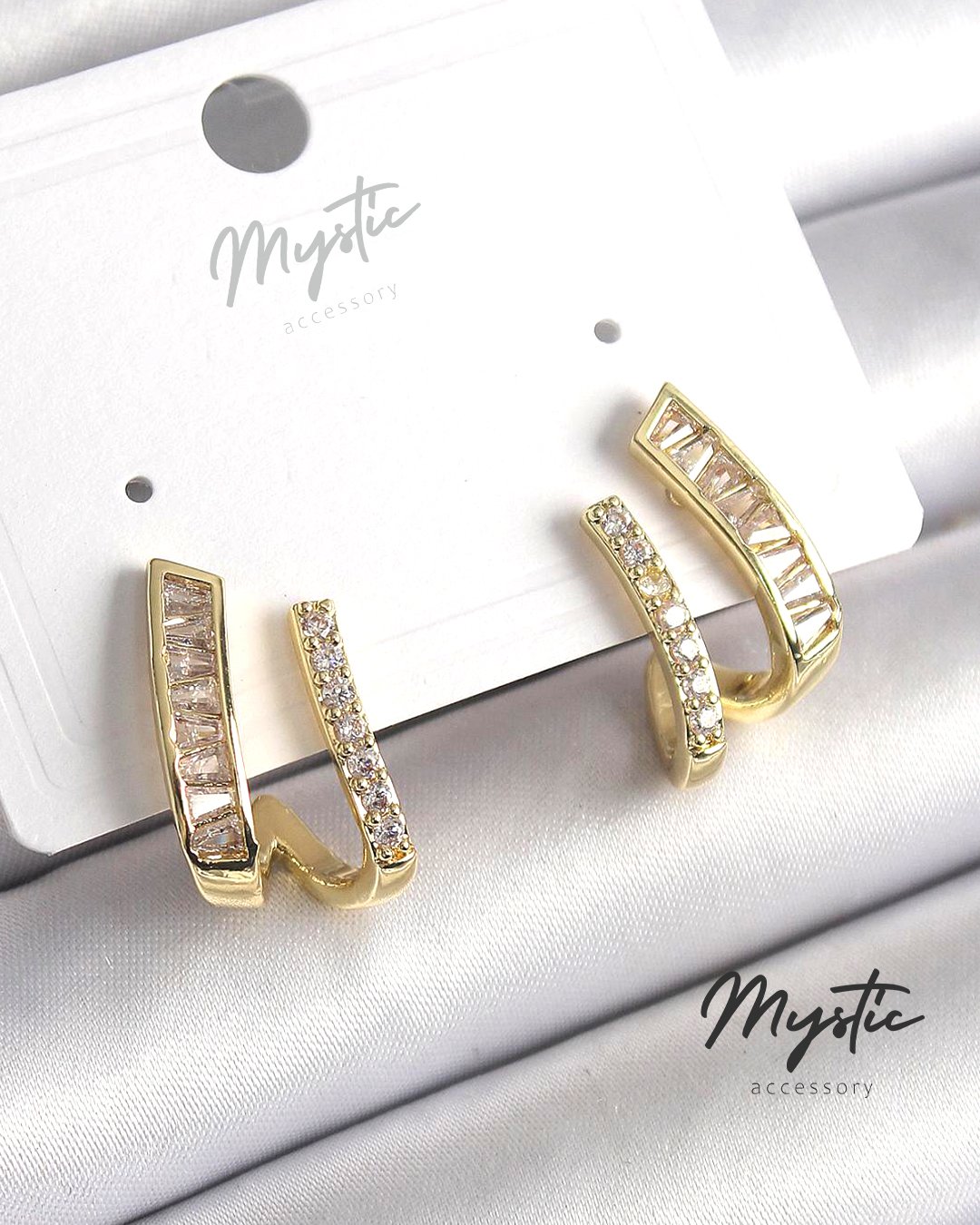 Pirinç Gümüş Renk Zirkon Taşlı Yarım Halka Model Kadın Küpe