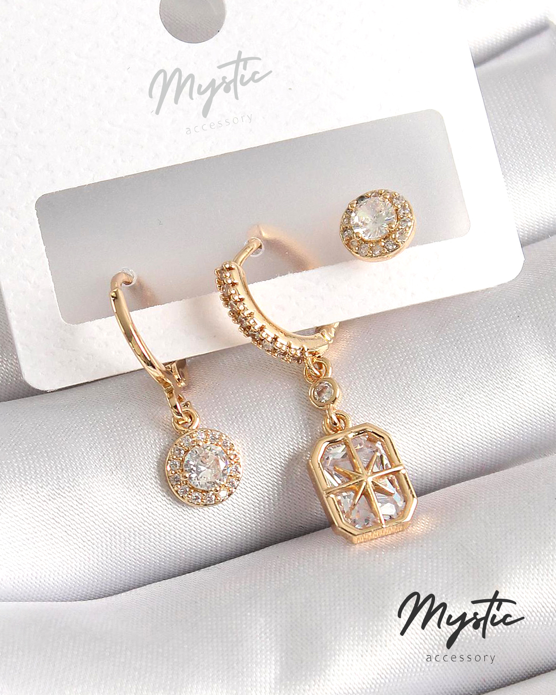 Pirinç Gold Renk Zirkon Taşlı Kutup Yıldızı Detay Kadın Küpe